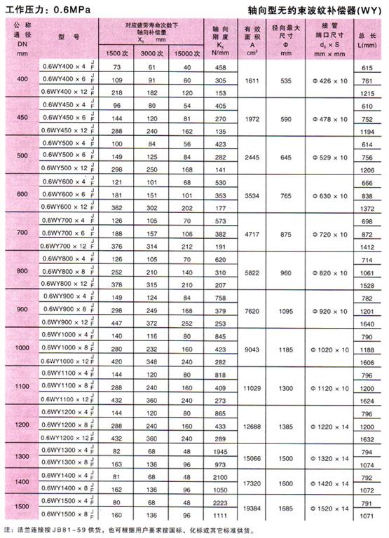 無約束波紋補償器(WY)參數(shù)2