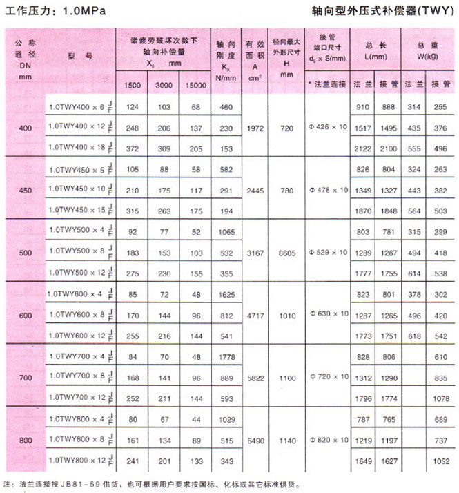 軸向型外壓式波紋補(bǔ)償器(TWY)參數(shù)4