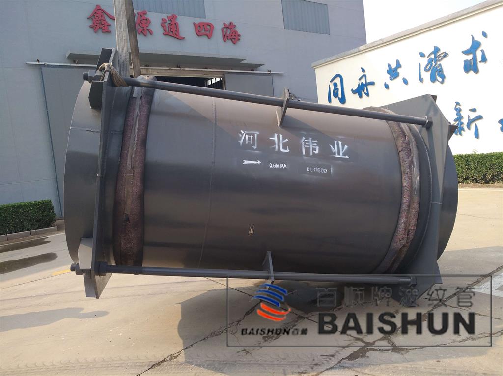 大拉桿橫向波紋管補償器,是一種用來補償彎曲管道的橫向位移。大拉桿波紋管補償器是由兩個相同的波紋管及端管、端板和拉桿組成的撓性部件,通過波紋管補償器的角偏轉(zhuǎn)可吸收管道單平面或多平面的橫向位移。4根長拉桿能承受內(nèi)壓推力和其它附加外力的作用,拉桿兩端的螺栓出廠前已調(diào)好間距,安裝前大拉桿是松動的,在大欄桿波紋管補償器工作變形后,大拉桿可以起到限制變形量保護波紋管補償器的作用。