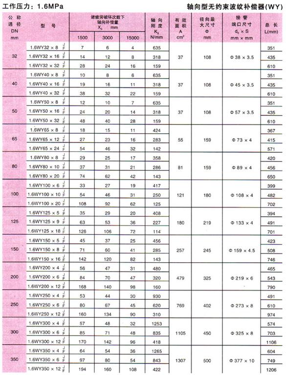 無約束波紋補(bǔ)償器(WY)參數(shù)5
