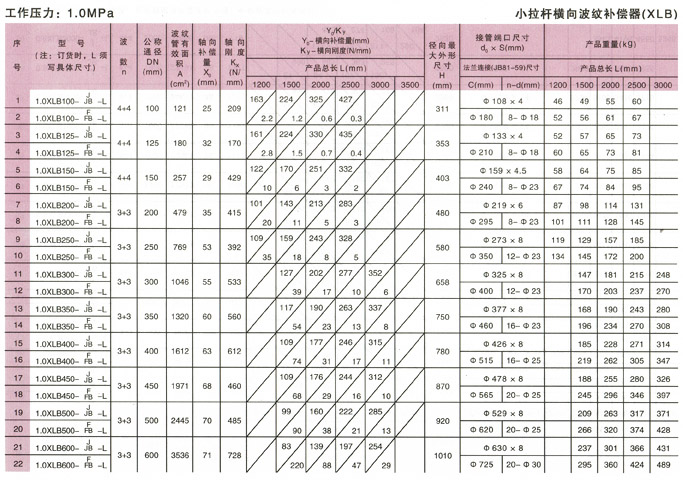 小拉桿橫向波紋補償器(XLB型)產品參數3