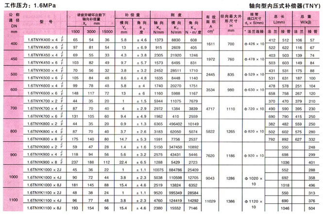 軸向型內(nèi)壓式波紋補償器(TNY)參數(shù)13