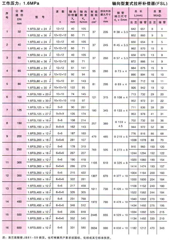 軸向型復式拉桿波紋補償器(FSL型)參數3