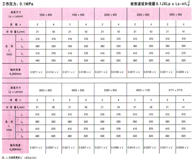 矩形波紋補償器(JX型)參數(shù)