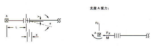 波紋補償器,用以補償軸向位移X=32mm,橫向位移Y=2.8mm,角向位移θ=1.8度,已知L=4m,補償器疲勞破壞次數按15000次考慮,試計算支座A的受力。
